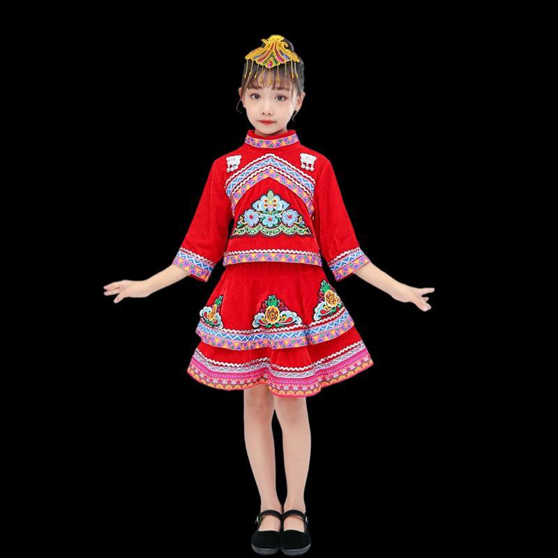 子供用56エスニックアチャン族衣装ステージパフォーマンス衣装男の子と女の子用少数民族伝統舞踊パフォーマンス衣装