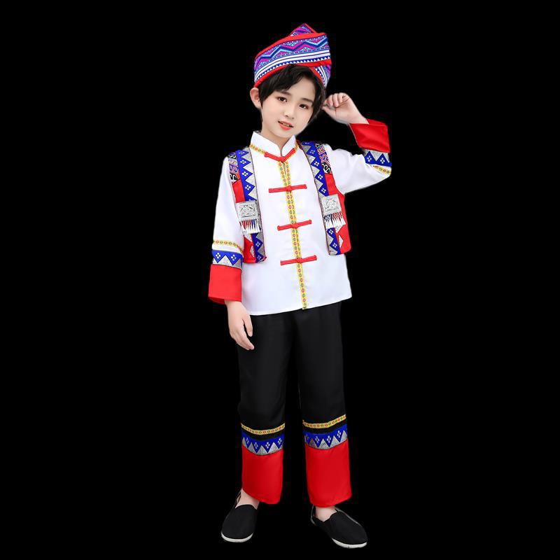 児童56名族白族衣装舞台演出服男女児童少数民族伝統舞踊演出服新