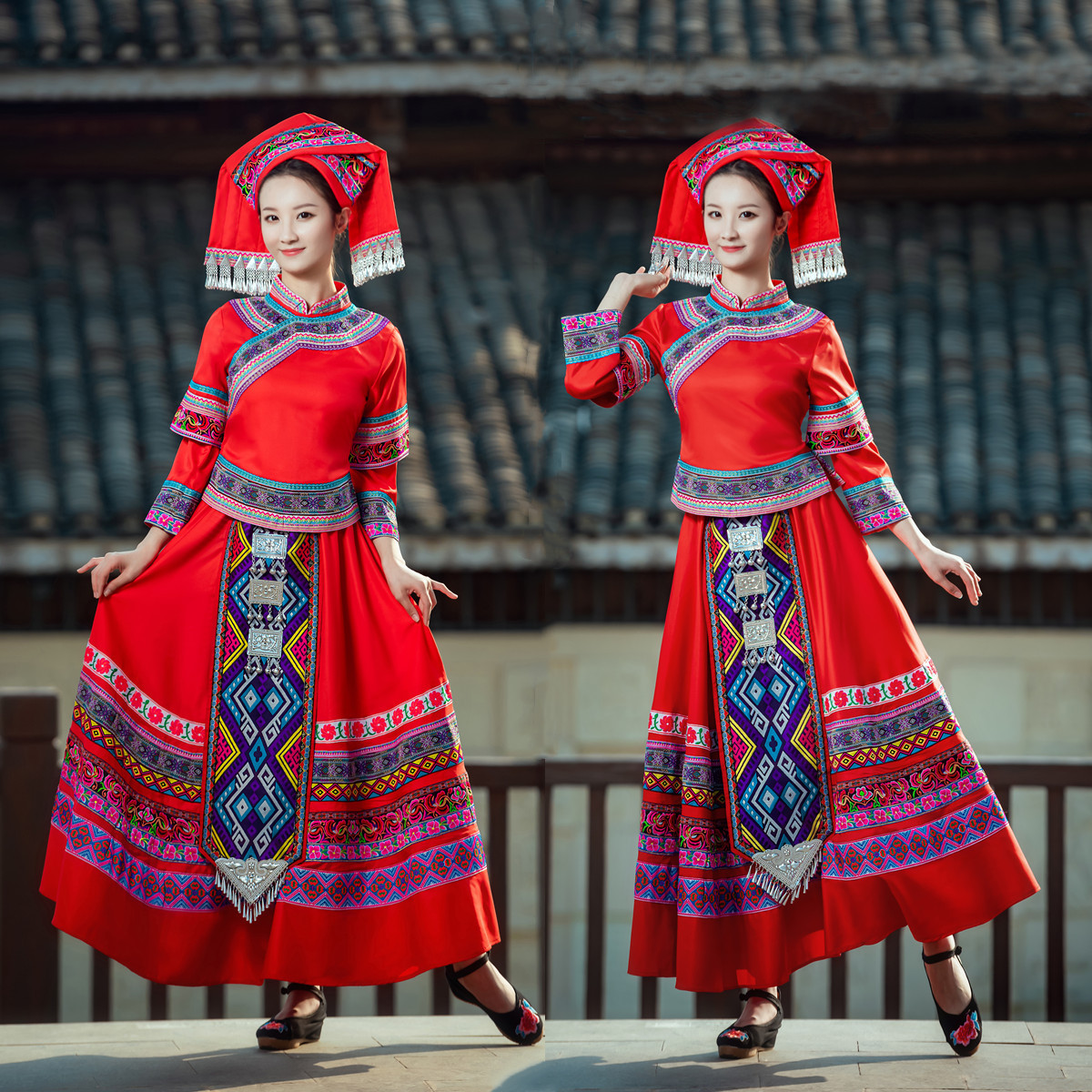 少数民族公演服装成人女性ミャオ族土家族門巴族ロバ族赫哲族京族スーツ