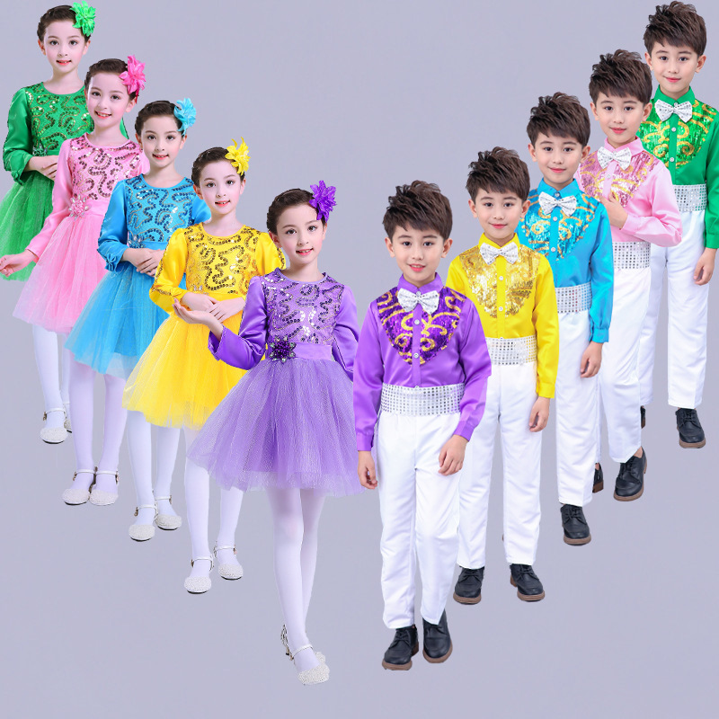 女の子のダンスの演出服のスパンコールの蓬蓬のスカートの小学生の合唱服の男の子の背もたれのズボンの詩の朗読の出演服