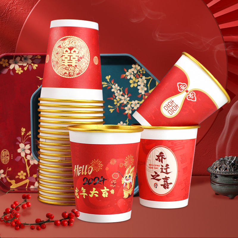 喜字入りミルクティーカップ、紙コップ、結婚式用紙コップ、ホットドリンク用業務用紙コップ、新築祝い、卸売、祝賀会用コーヒーカップ、厚手
