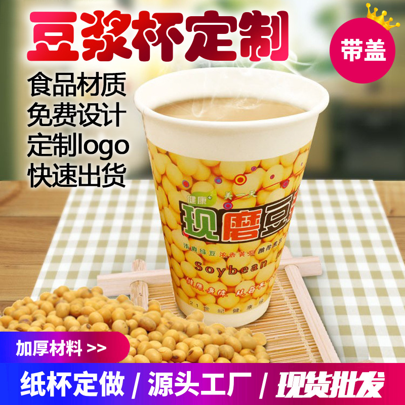 朝食ミルク豆乳カップ蓋付き紙広告カップ印刷使い捨てミルクティーカップ卸売カスタム紙カップ