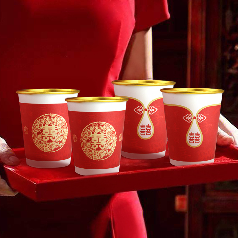 新年の結婚式、紙コップ、結婚披露宴、結婚式、新年、新築祝い、使い捨て、幸せの言葉、新築祝い、金箔、辰年、幸運を祈ります