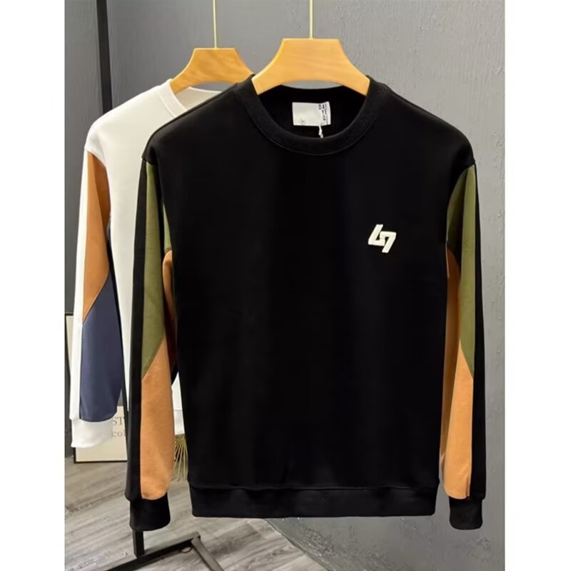 ベルベットの男性の秋冬の新しい潮牌は丸首の長袖tシャツの奥粒のベルベットの保温の中で上着を掛けます。