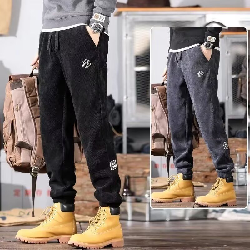 秋の男性のコーデュロイのカジュアルなズボンの刺繍はゆったりしています。