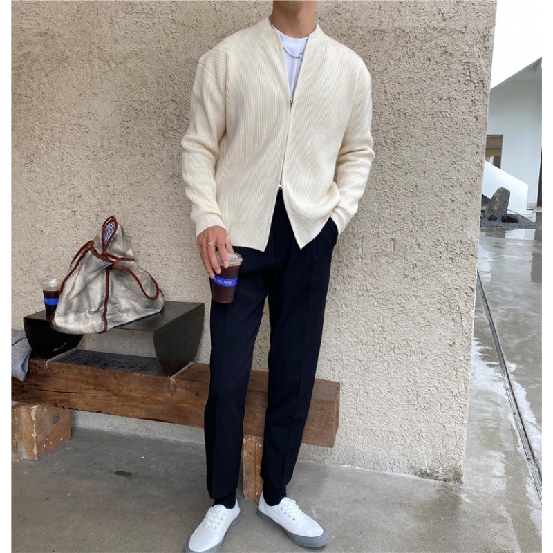 香港風韓国版ニットカーディガン男性春と秋の薄い純色の基本モデルのカジュアルなファスナーのセーターのコート男性の軽い熟風