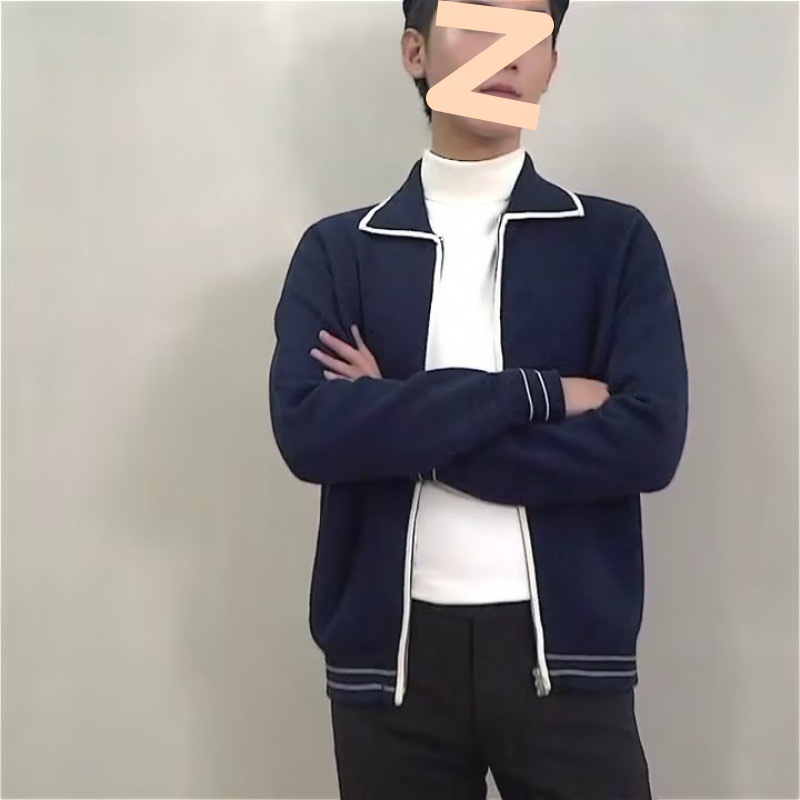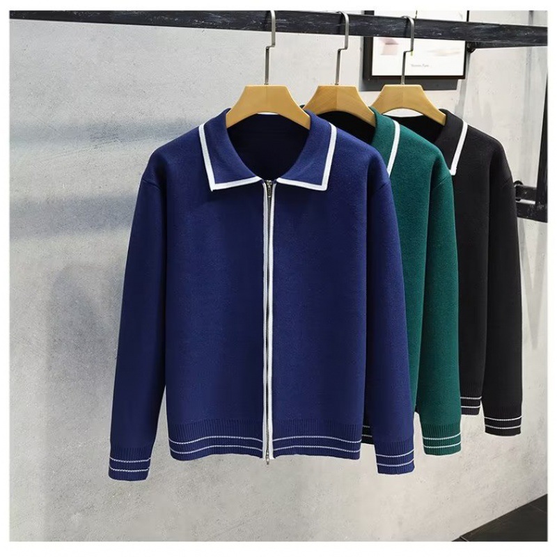 高級感polo襟ファスナー男性秋セーター軽熟風ニット男性新商品韓国版ゆったりスウェット