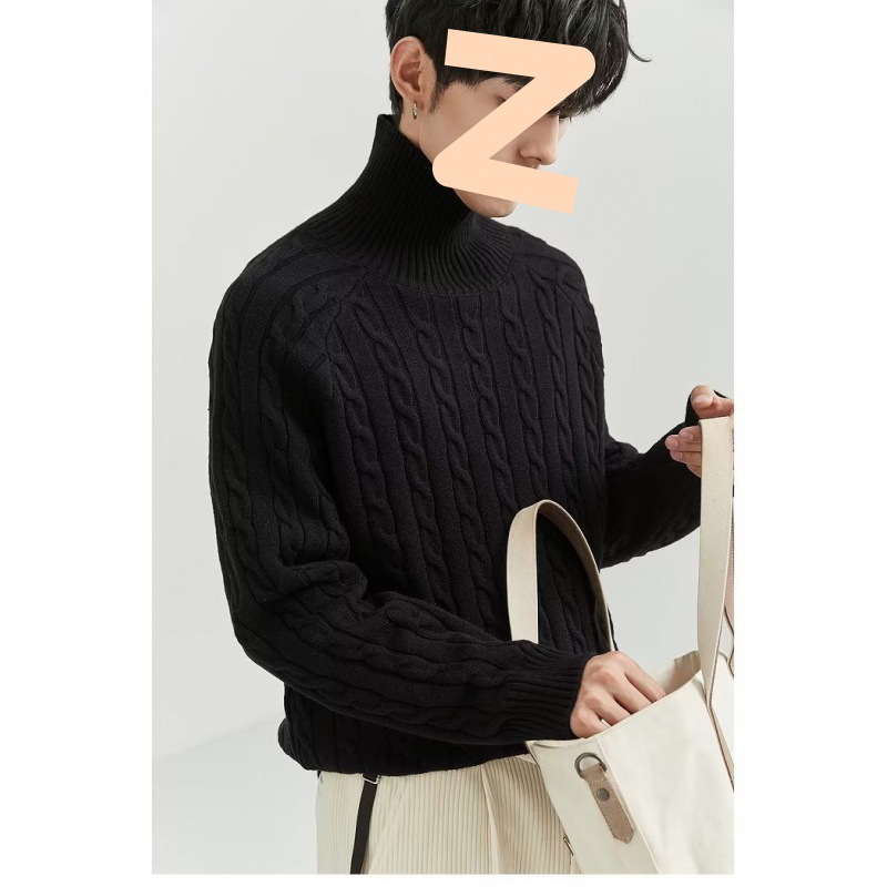 麻の花のねじりの縄は厚い高襟のセーターの男性のゆったりしているジャカードの2024秋冬の新型の韓国版のニットの底のシャツをプラスします。