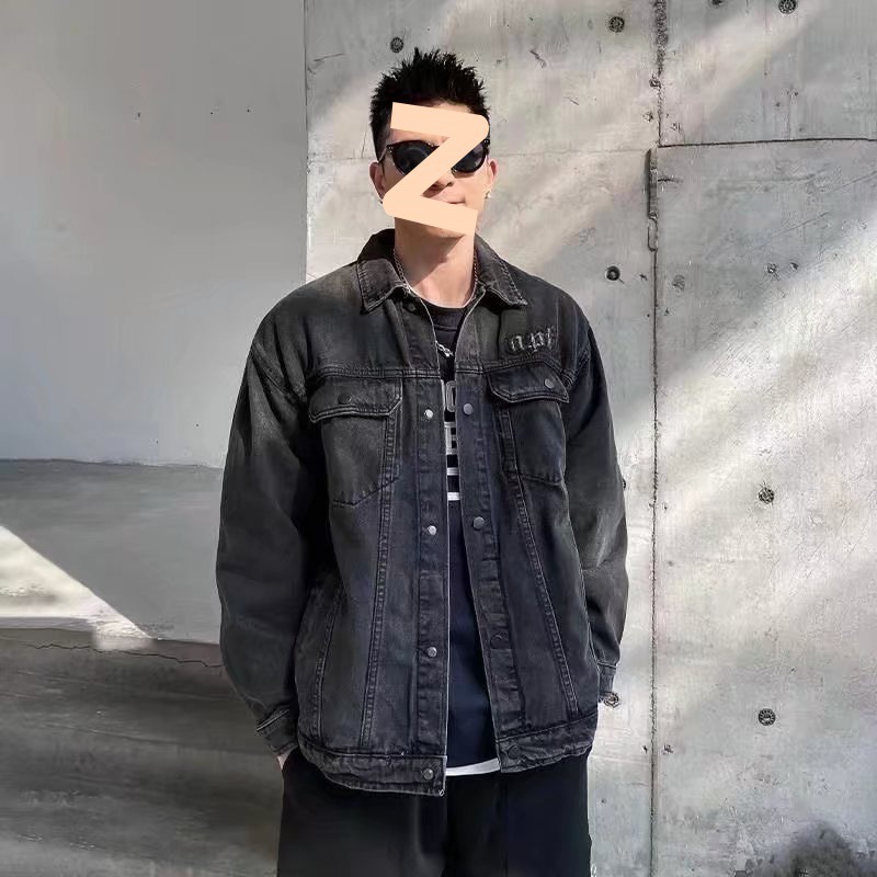 2024潮男日系復古は古いデニムジャケットを作っています。