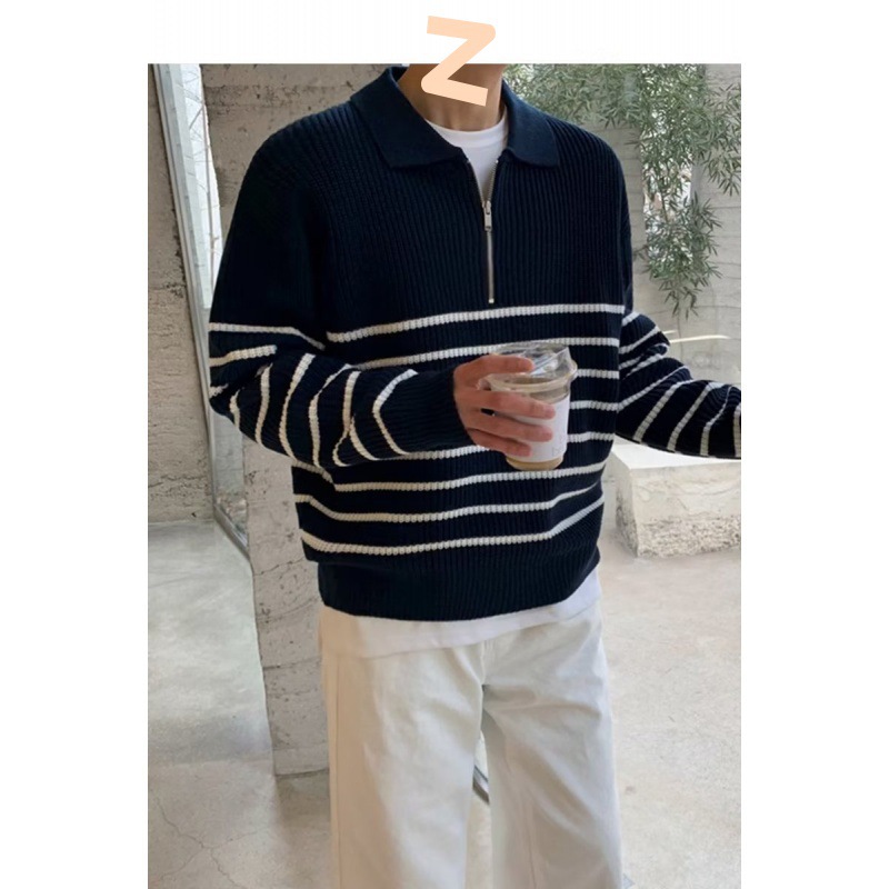 高級感polo襟ファスナー男性秋セーター軽熟風ニット男性新商品韓国版ゆったりスウェット