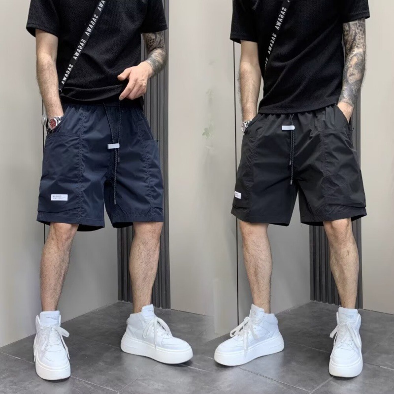 アメリカのファッションブランドの工装半ズボンの男性のタイプの夏の氷の糸の薄いタイプの大きいポケットの5分のズボンのまっすぐな筒の速乾の運動の中でズボン
