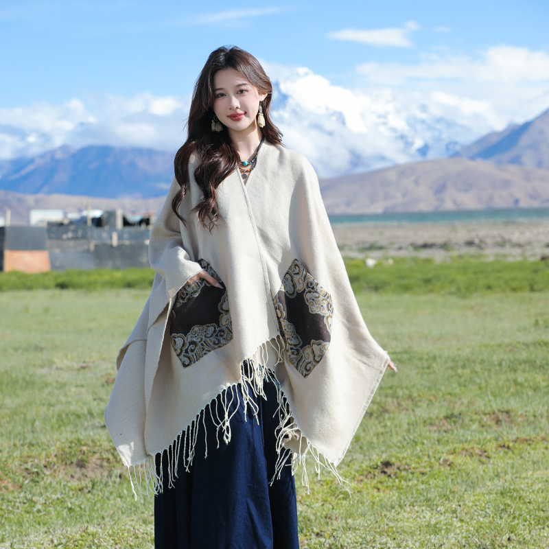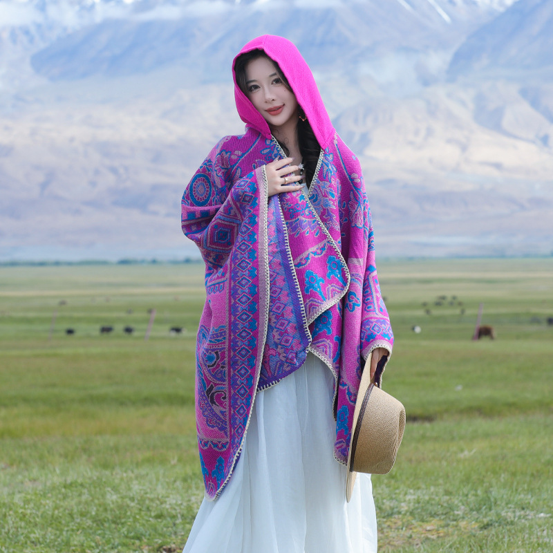 2024新型民族風帽子付きマント雲南青海チベット西北草原旅行防風保温マント