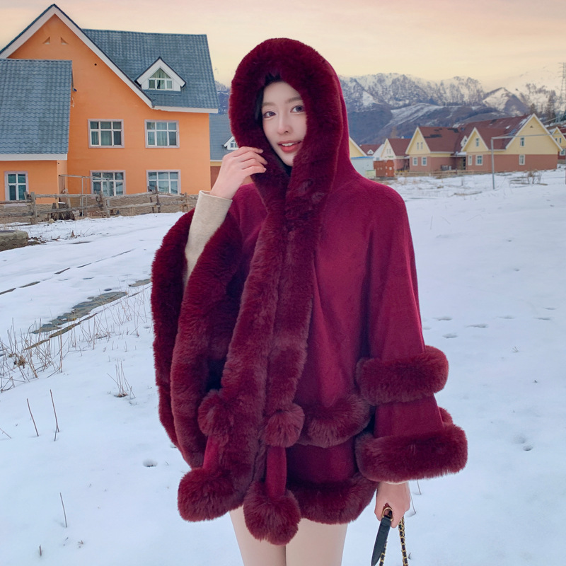 国境を越えた欧米の秋冬の新型はラッキーウサギの毛の襟のショールの旅行のマントの大きいサイズのメリヤスのカーディガンのゆったりしているコートの女性をまねます。