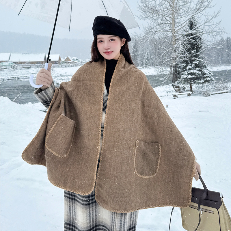 韓国版の純色のポケットはカシミヤのショールのマフラーをまねています。