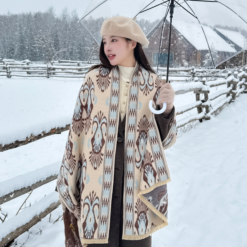 韓国版レトロ豹紋ストール女性秋冬保温外付けカンカンファッション洋気質マントマフラー