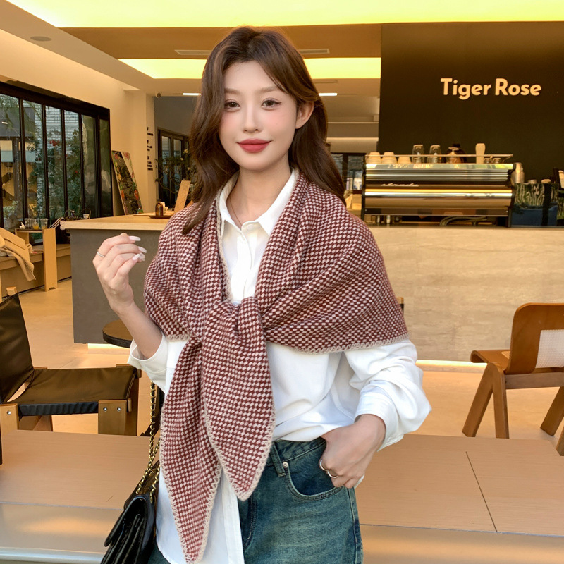 レディーススカーフ秋冬韓版百合高級感三角ストールファッション優雅小格子ドレスストール