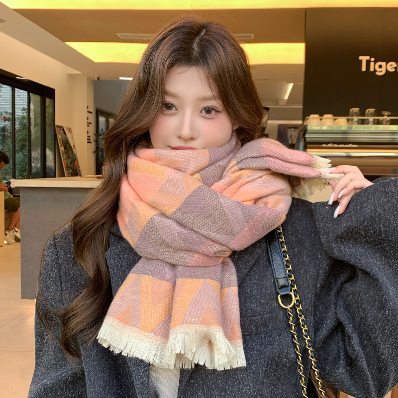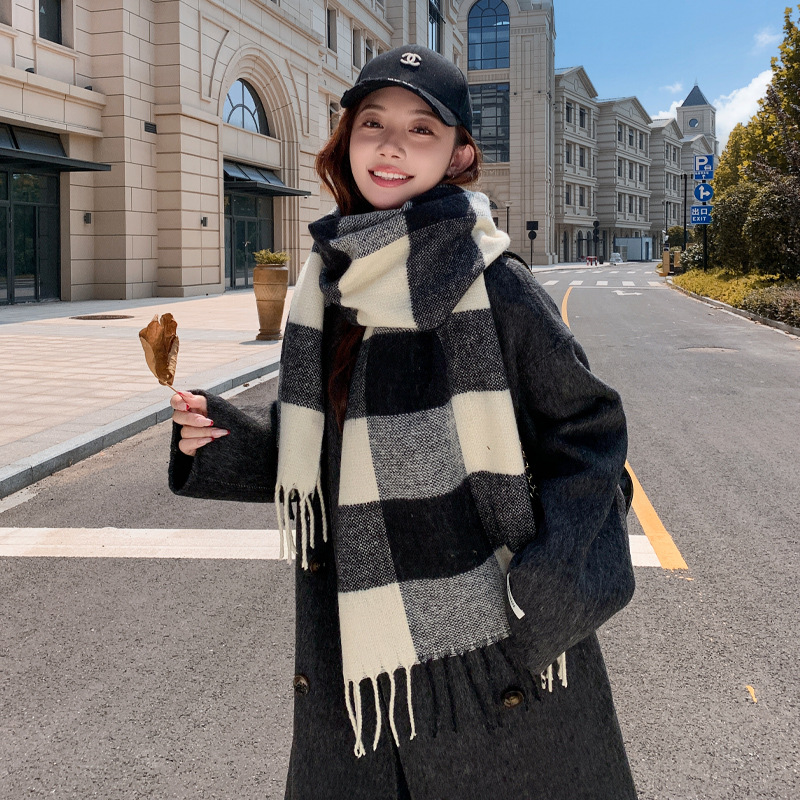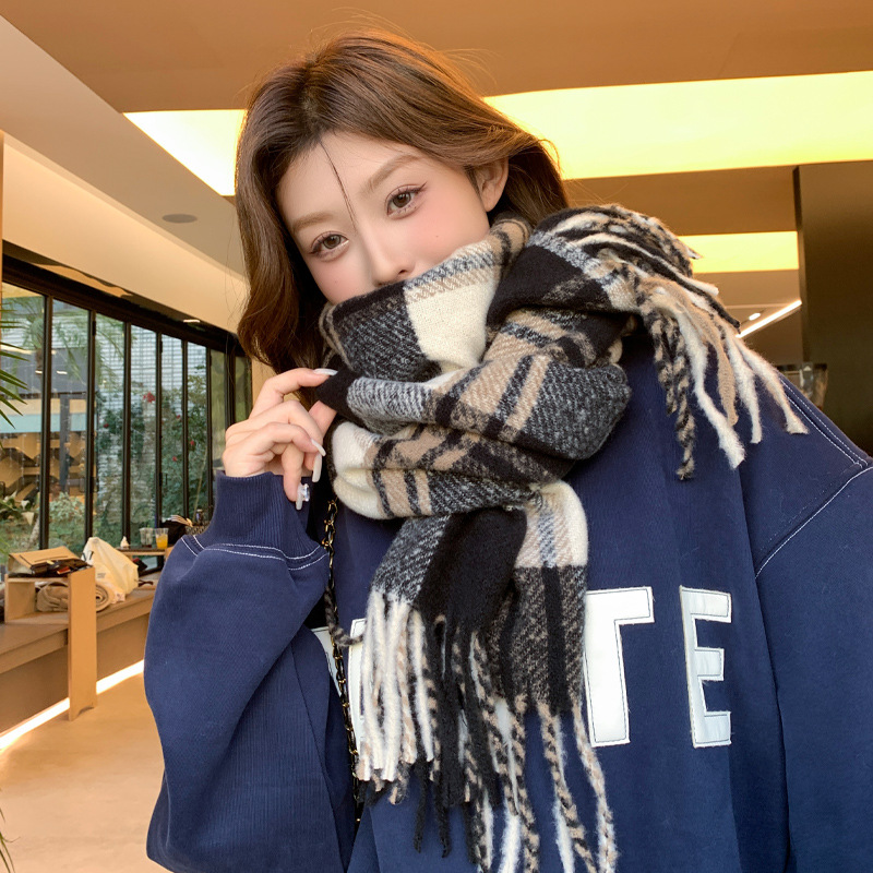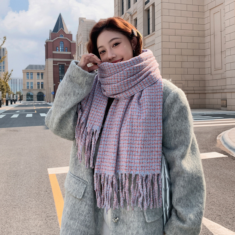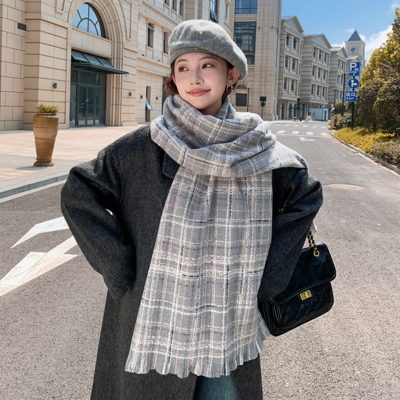 2024新型韓国版少女冬百合カップルはカシミヤマフラーの学生の高級感防寒格子マフラーに似せている