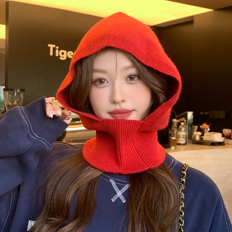 2024新型赤い雰囲気感帽子女性保温首保護ニット帽子超痩せ顔包頭帽子