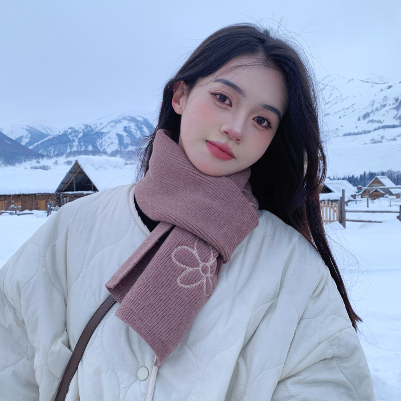 韓国版の冬の新型刺繍の花の毛糸のマフラーの純色は簡単です。