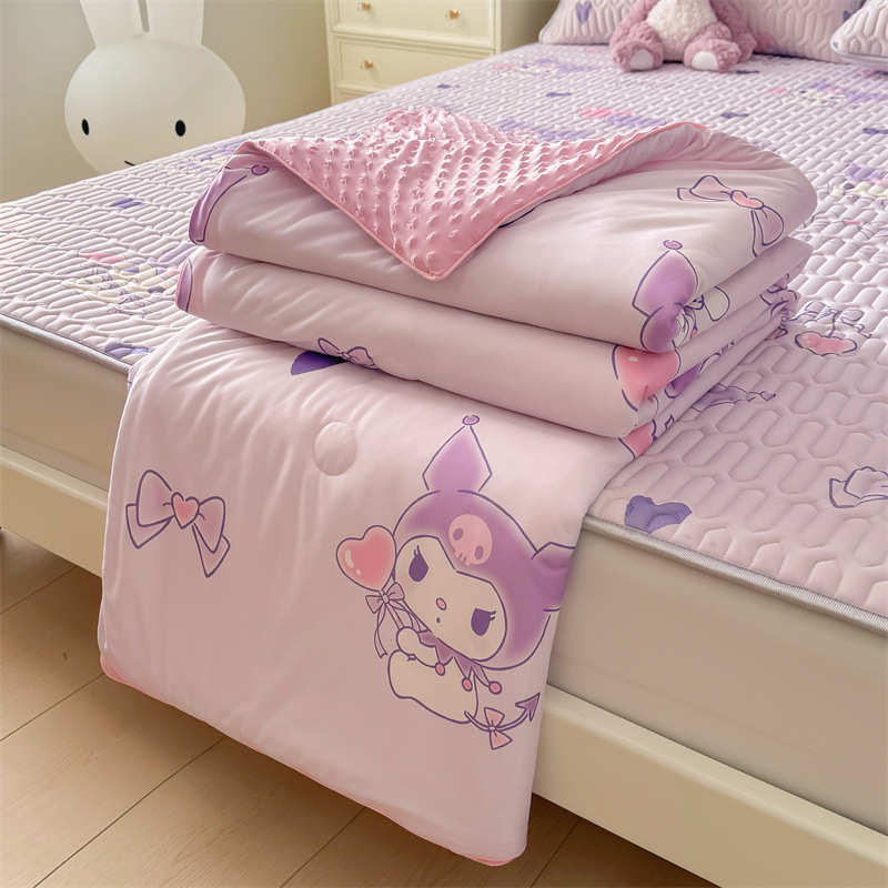 クラスA サンリオ漫画ラテックスマットサマーキルト4点セット クロミエアコンキルト ニットコットンアイスシルクビーンキルト