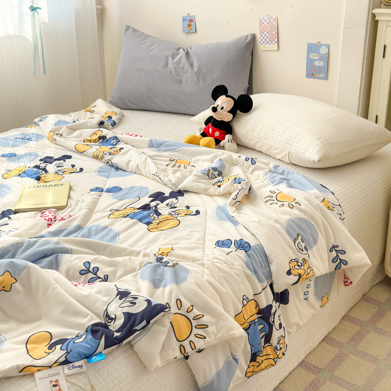 2025 春夏新高価値漫画ミッキープリントニットウォッシュコットンサマーキルトエアコンキルト寮サマーキルト
