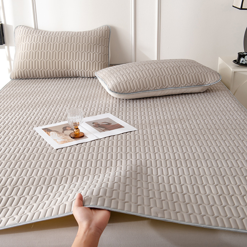 新しいタイプAクールアイスシルクベッドスカートマット3点セット母子洗濯機で洗えるエアコン付きソフトマット夏用アイスシルクマット