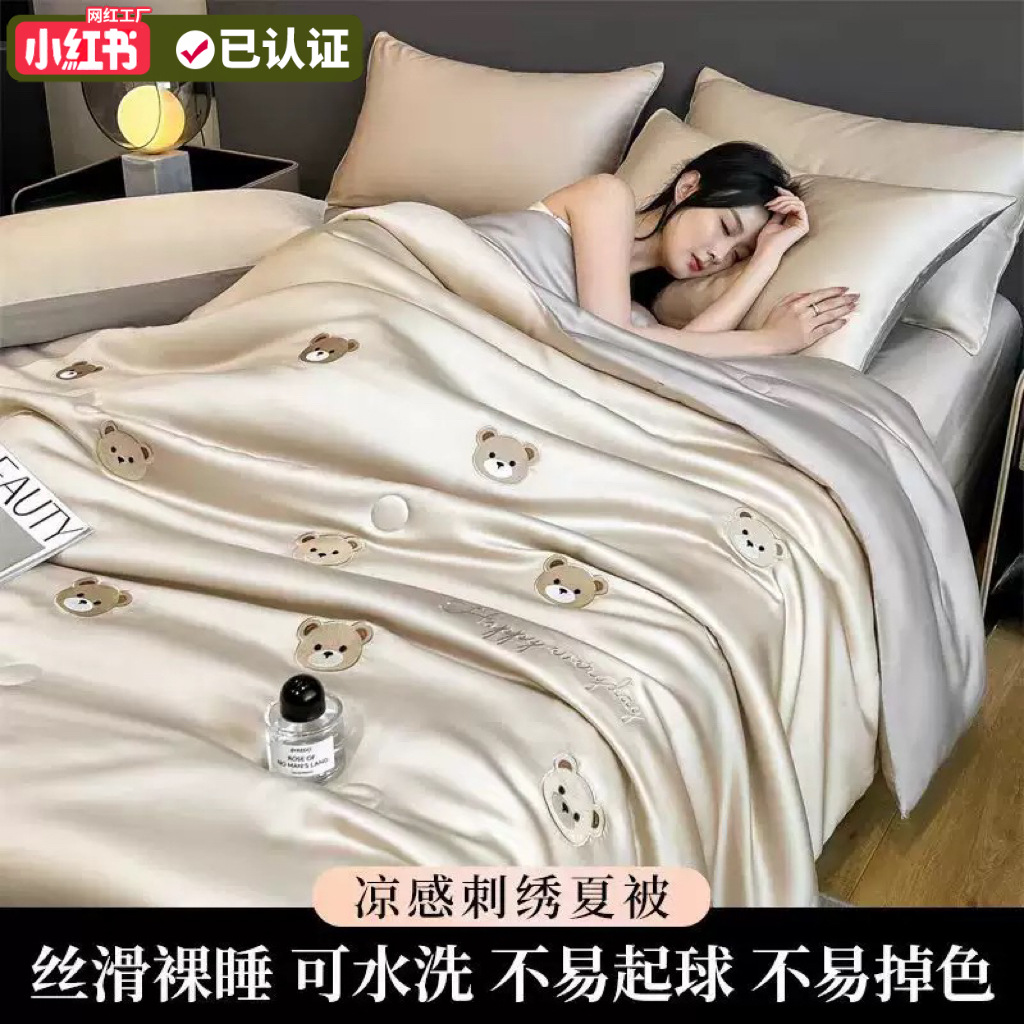 夏クールアイスシルクサマーキルト夏クールキルト4点セット刺繍シングルとダブル寮エアコンキルト洗濯機で洗える薄いキルト