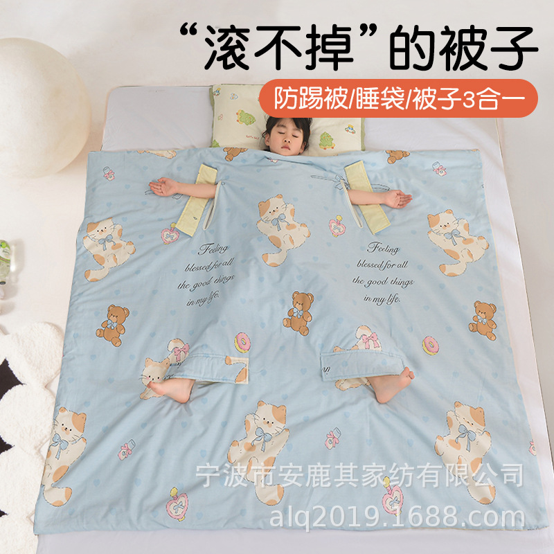 子供用アンチキックキルトアーティファクト、中型および大型子供用綿サマーキルト寝袋、洗濯機で洗える純綿エアコン薄型キルト2025