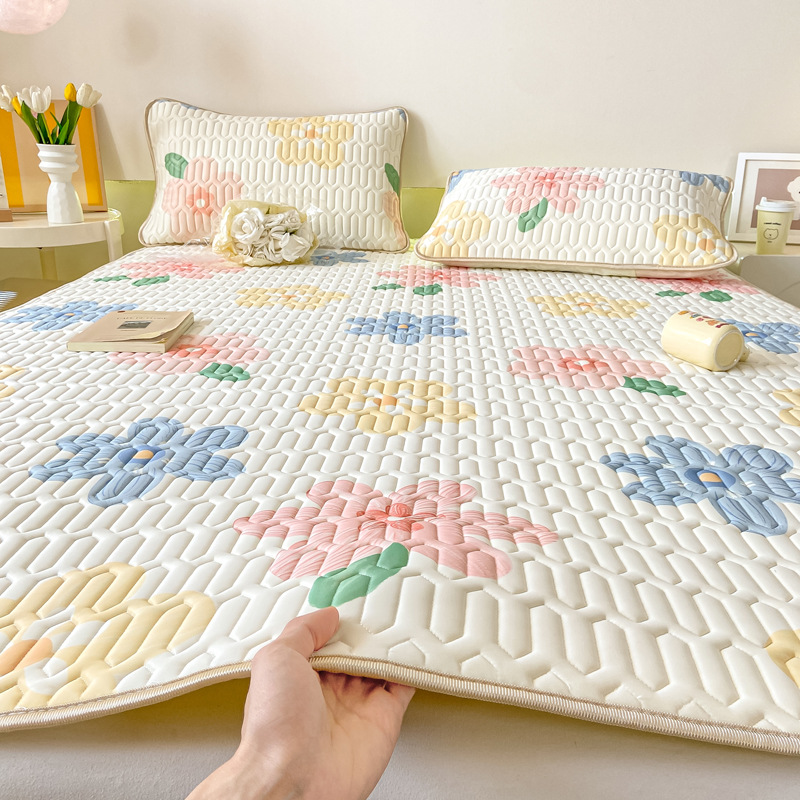夏アイスシルクラテックスマット 3 点セット夏の新しい家庭用エアコンアイスシルクマットレスシングル洗えるマット