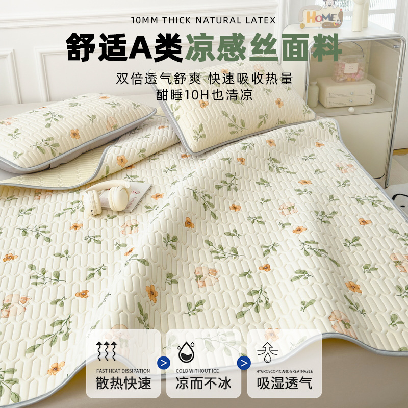 クラスA母子グレードラテックスマット3点セットアイスシルクシーツとボックスシーツ折りたたみ式滑り止め冷感エアコンマット卸売