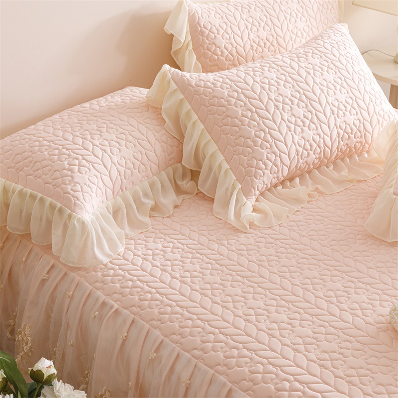 プリンセススタイルベッドスカートラテックスマットサマークールキルト3点または4点セットサマーアイスシルクエアコンキルト洗濯機で洗えるベッドカバー