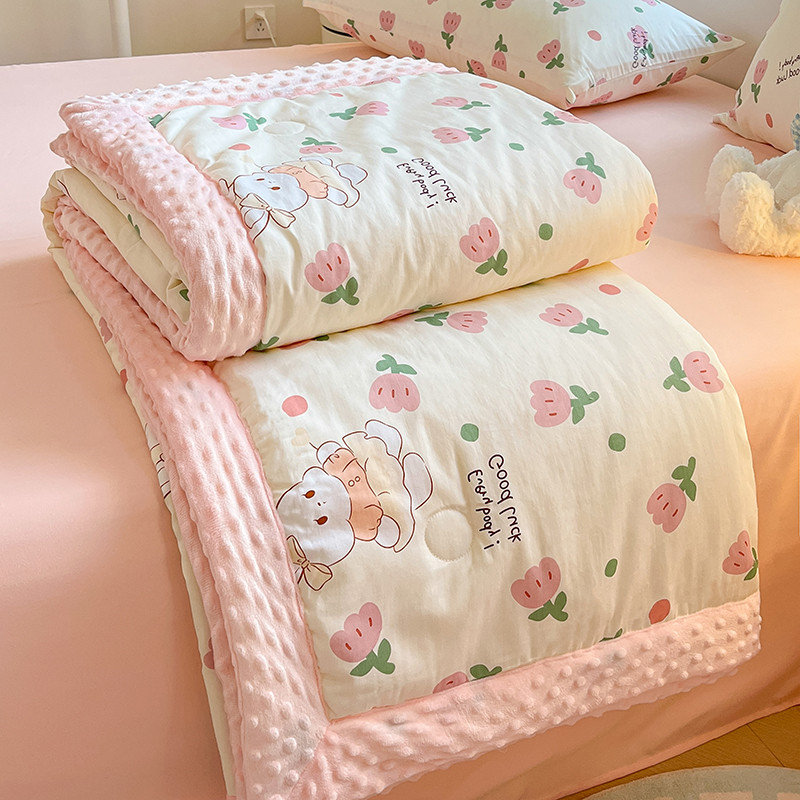 クラス A ミルクニット綿漫画プリント家庭用寝具シングルサマーキルトエアコンキルト学生寮薄いキルト