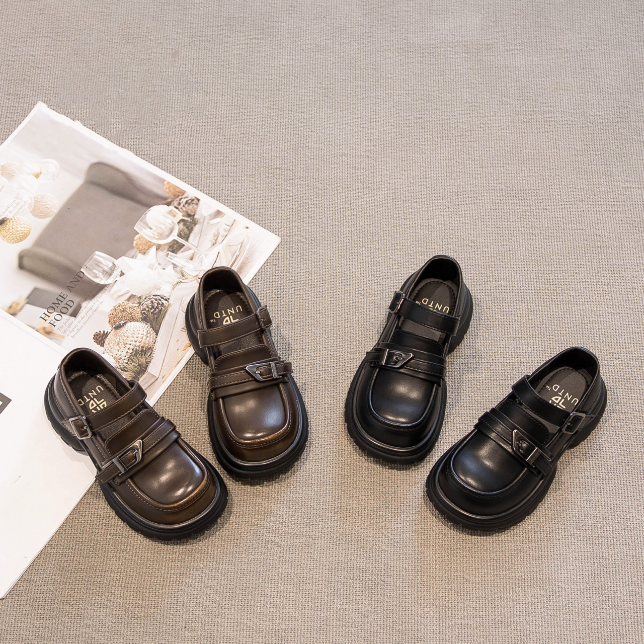 少女英倫風靴春秋2023新黒色洋気少女楽福靴軟底児童豆靴