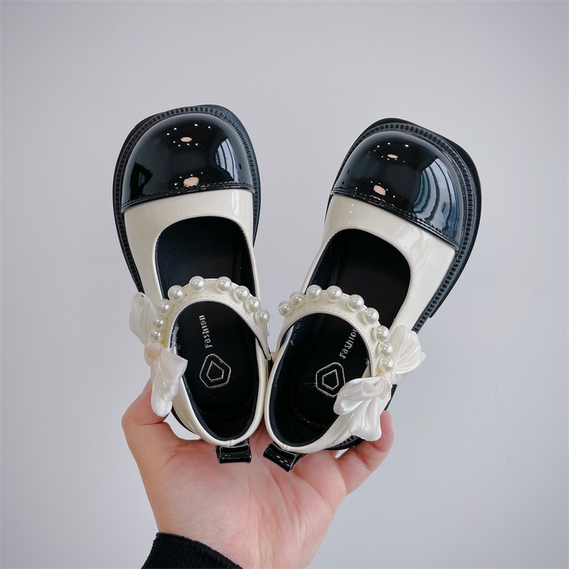 2023年春の新しい子供靴の女の子の甘い蝶結びの王女の靴の韓国版の気質の明るい皮の女の子の靴