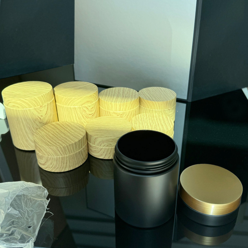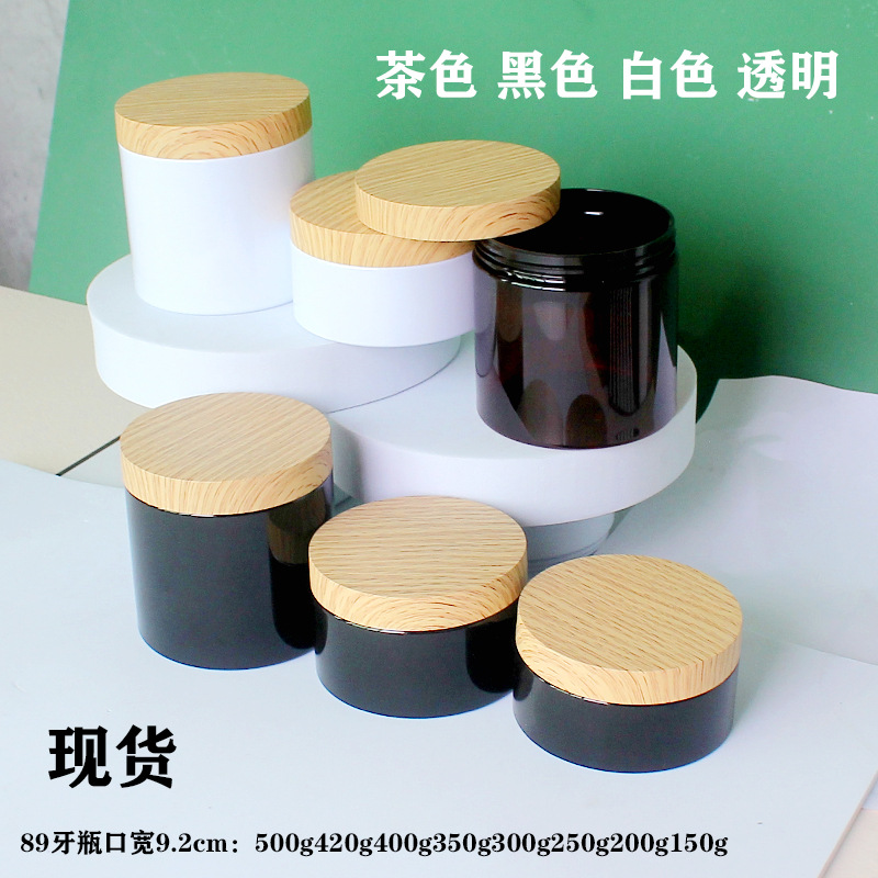 現物広口瓶petプラスチック分注瓶木目蓋髪膜缶食品包装瓶クリーム分注