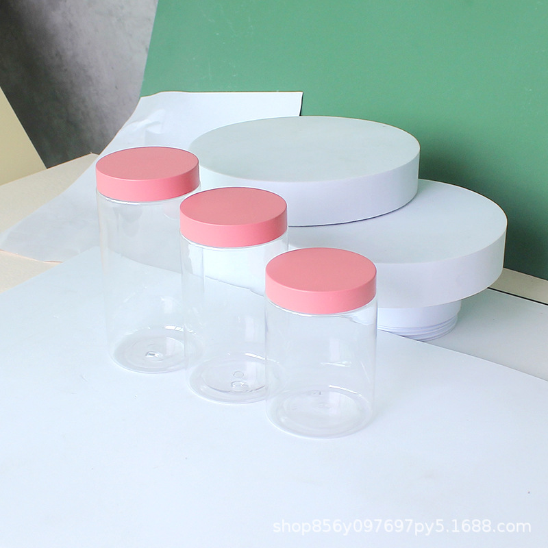 現物透明広口瓶pet木目蓋髪膜缶食品包装瓶クリーム分注缶