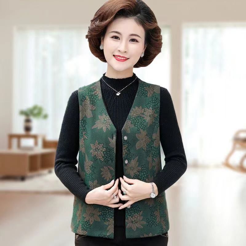 中高年の馬甲の女性の新型の洋風の春秋服のおばあさんのカーディガンのノースリーブのカンカンの肩の冬服のお母さんのベストのコート