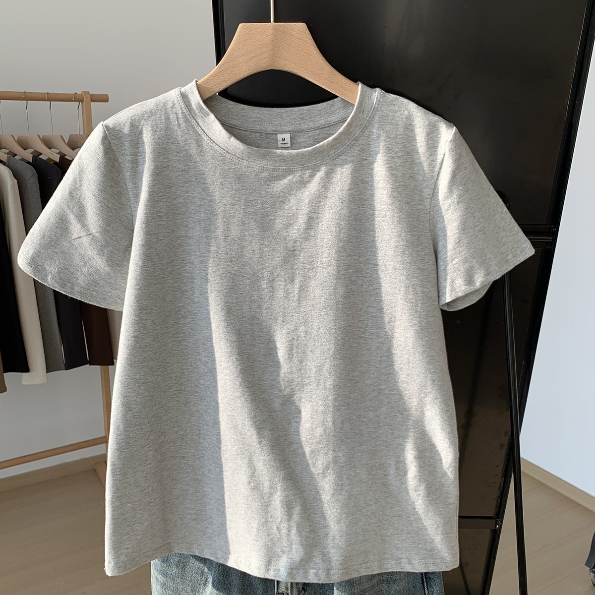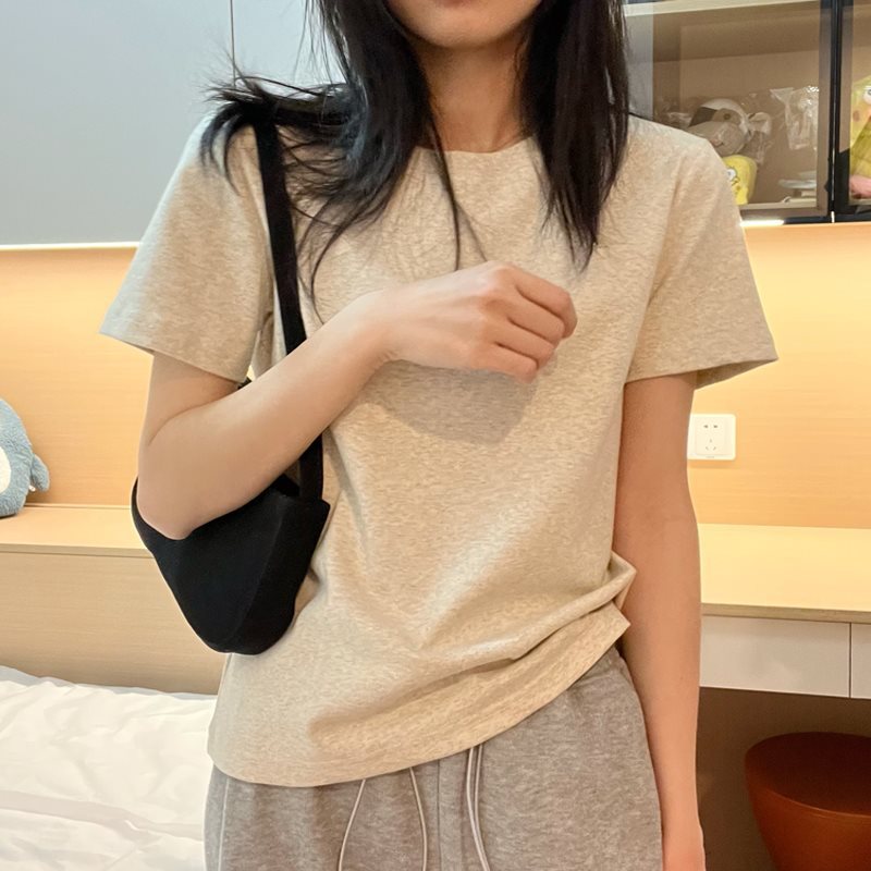 ベーシックグレー Tシャツレディース半袖 2025 夏新作ラウンドネックルーズシンプルコットン Tシャツ右肩トップ