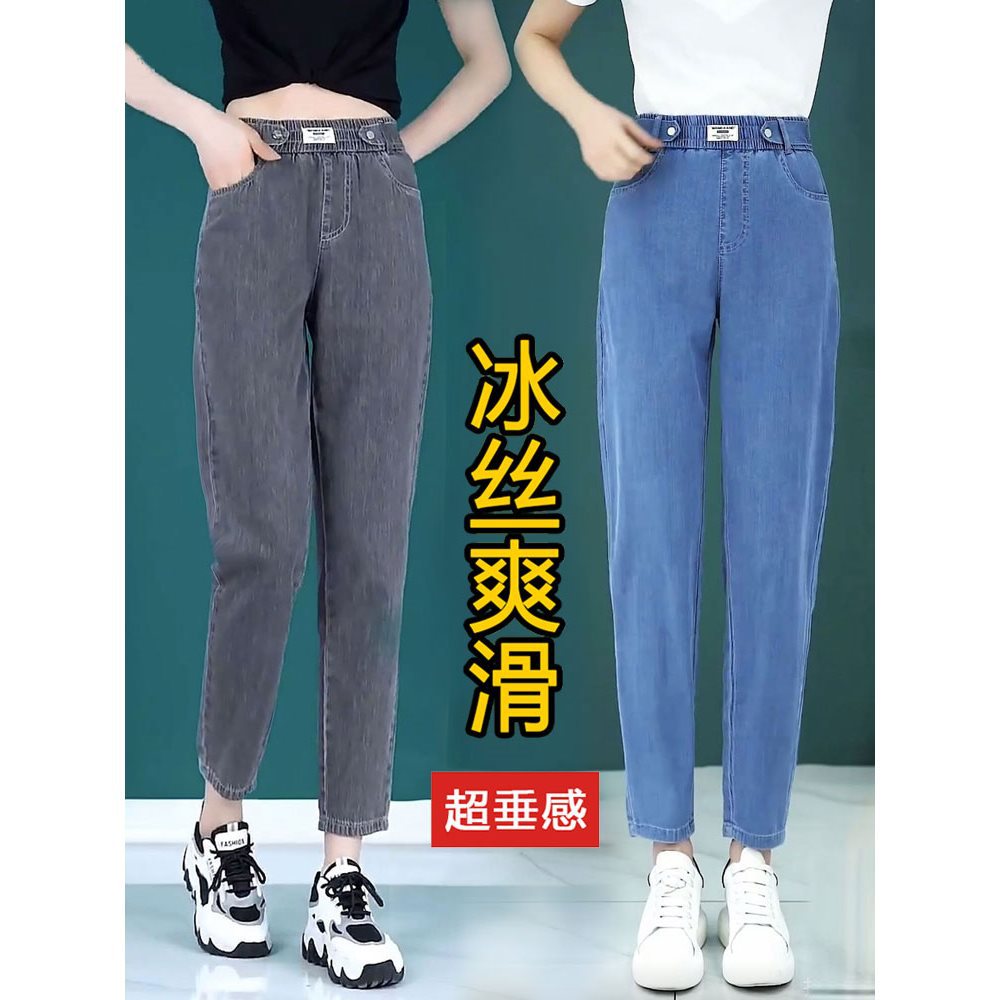 女性用テンセルデニムハーレムパンツ、薄手、小柄、ゆったり、ストレート、カジュアル、ワイドレッグ、大きいサイズ、夏用クールアイスシルクパンツ