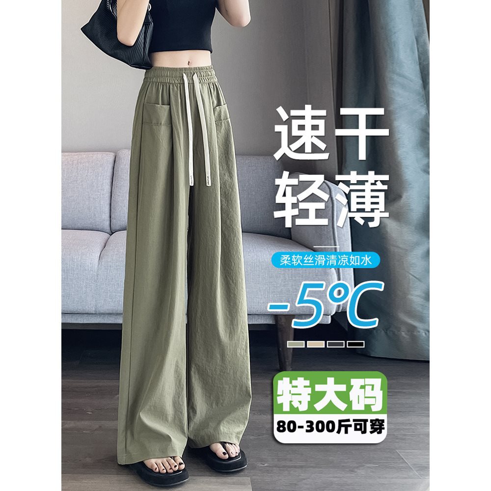 150kg ファットmm大きいサイズ速乾ワイドレッグパンツ女性用夏薄いアイスシルクルーズカバー肉痩身ストレートカジュアルパンツ
