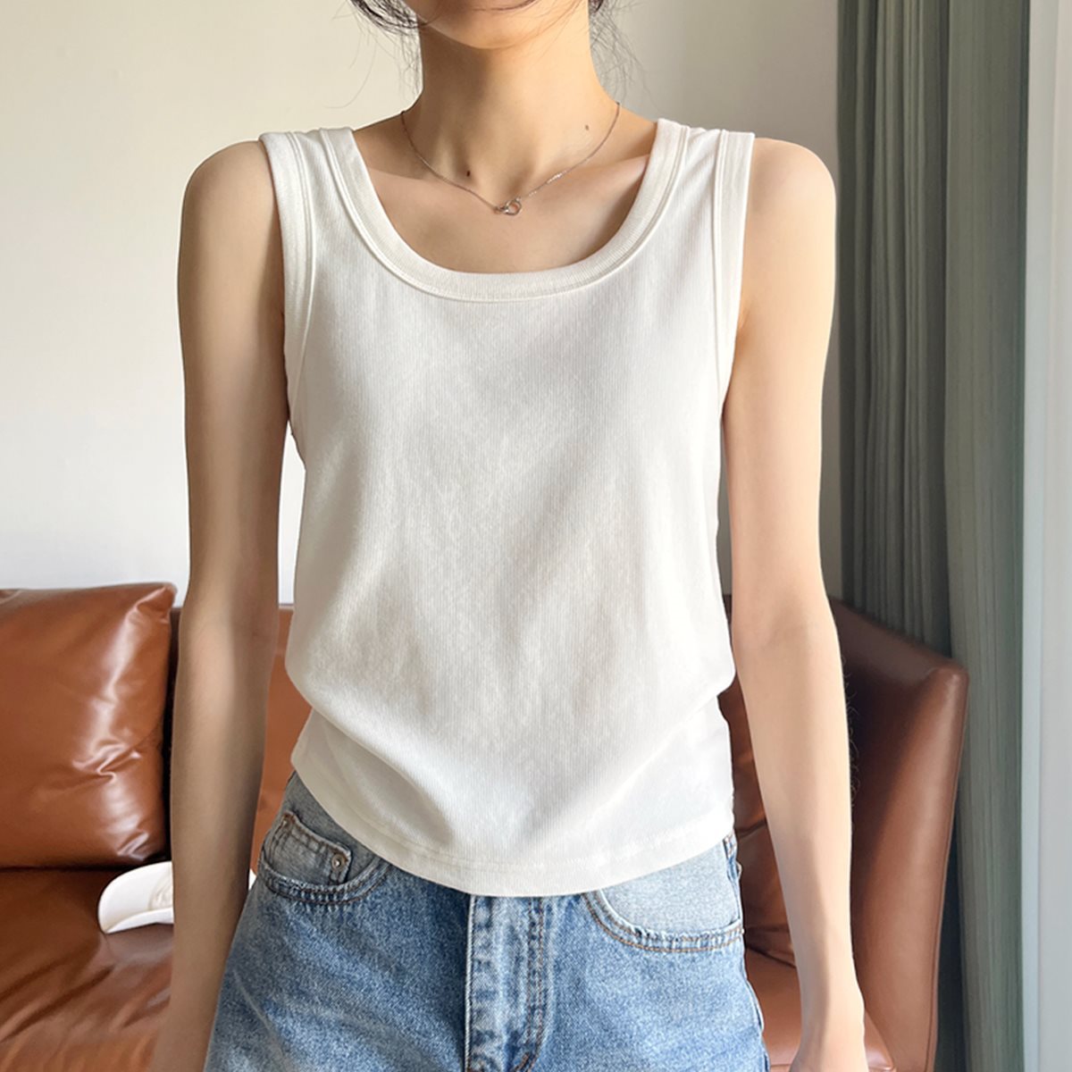 2025 ソリッドカラー多用途スリムフィットワイドエッジサスペンダーレディースホワイト肌に優しいベストアウターウェアレディースショートインナートップ夏