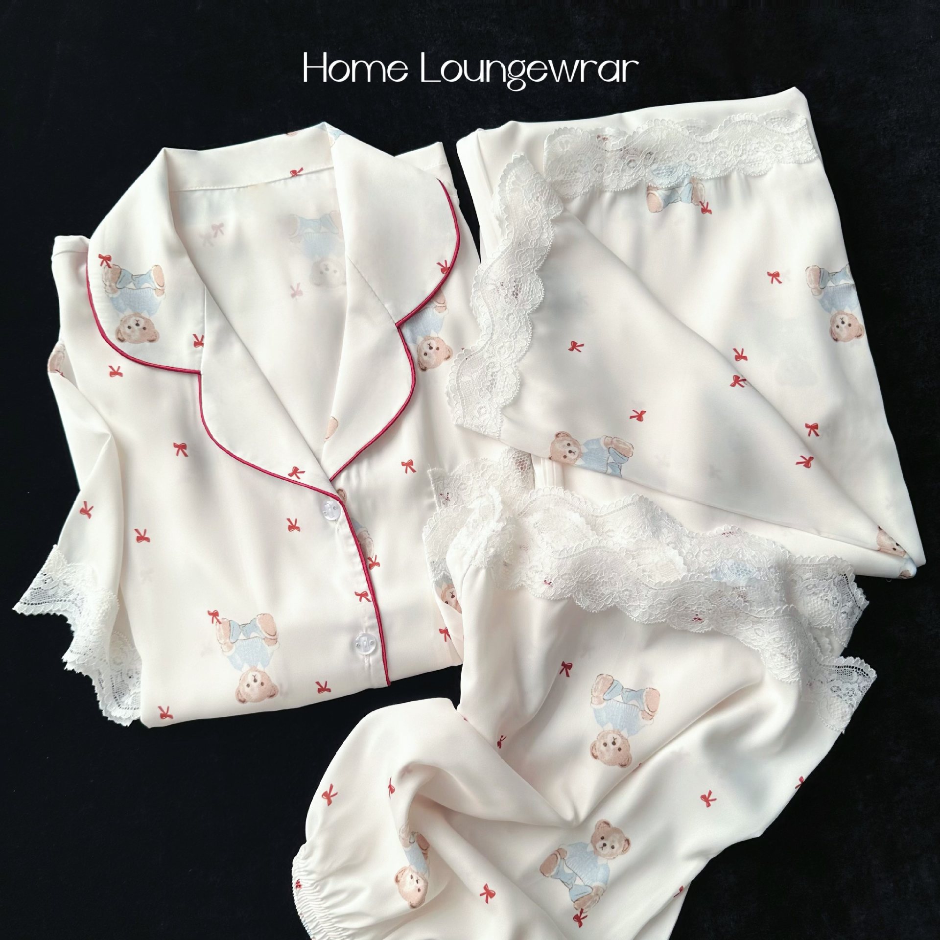 女性用パジャマ春、秋、夏 2025 新しい長袖アイスシルク半袖 3 点セットキュートで甘いシルクホーム服