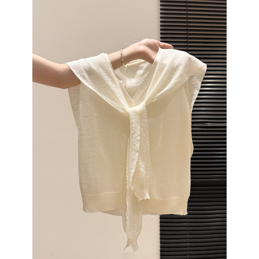 気質ショール V ネックアイスシルクニット半袖ベスト女性の夏の新しいスリムでシックなデザインのカーディガントップ
