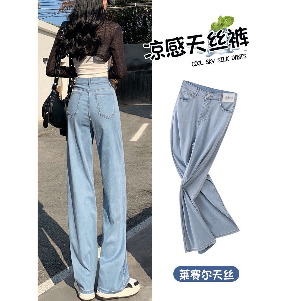 リヨセルテンセルジーンズレディースアイスシルク2025夏スタイルエクストラロングドレープナローバージョンストレートワイドレッグパンツ