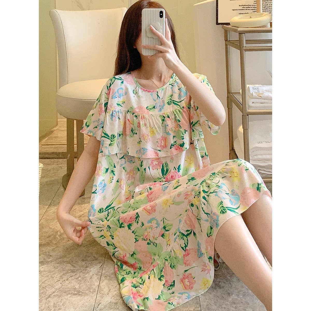 女性のための抗バンプ寝間着夏薄い大きいサイズの綿シルクスカート 2025 新しい氷の感触綿シルクルーズホーム服
