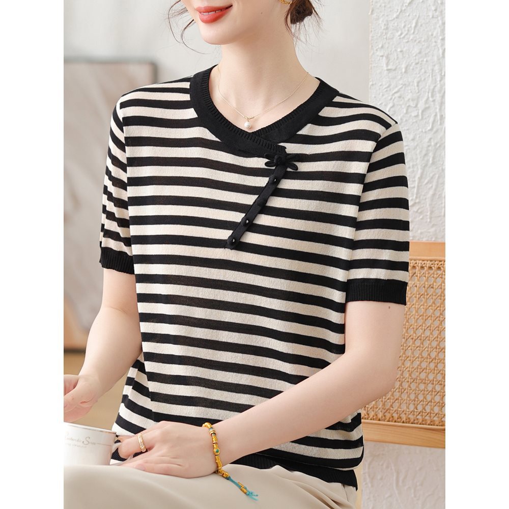 2025 新しい夏の半袖 Tシャツアイスシルク薄いカーディガン女性のアイスシルクセーター