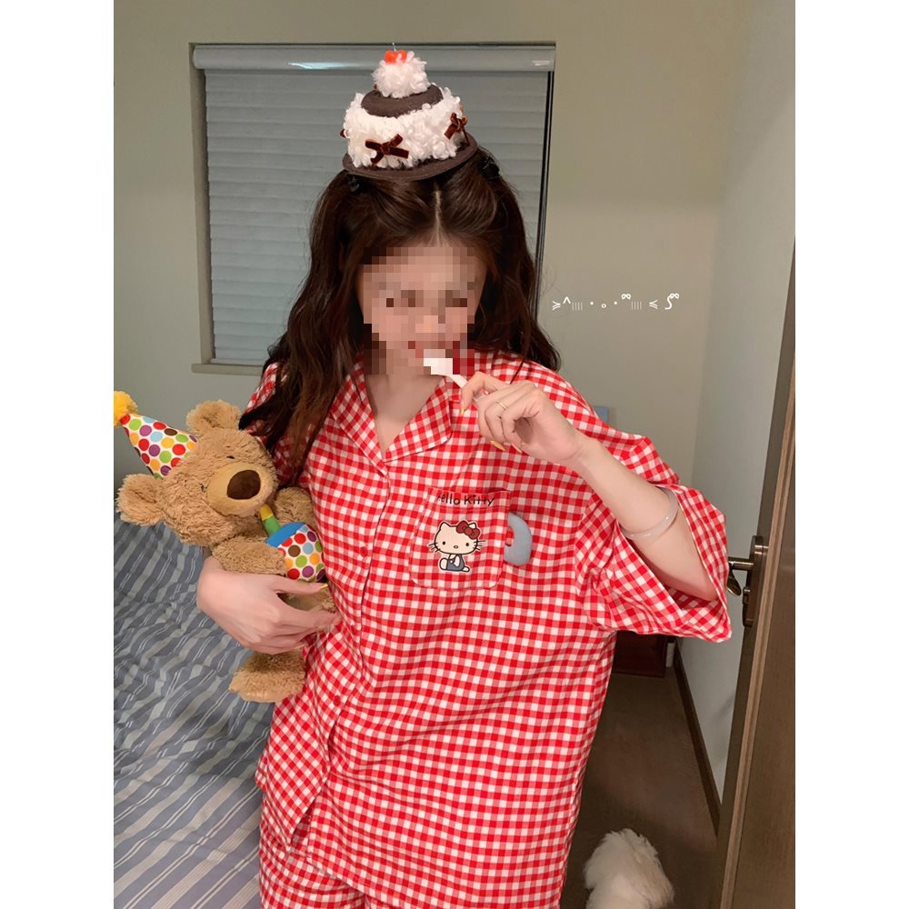 ハローキティパジャマ女性のための夏 2025 新しい綿半袖大きいサイズかわいいウェアラブルホーム服セット