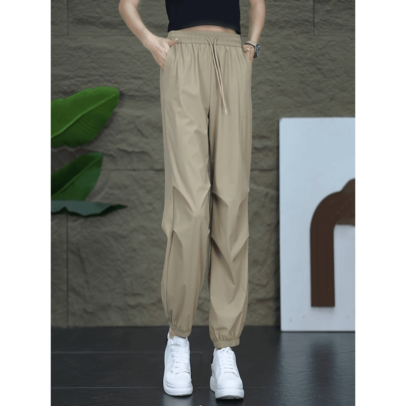 アイスシルク速乾パンツ女性の夏薄い 2025 新しいハイウエストスリムスポーツカジュアル 9 点ハーレムパンツ