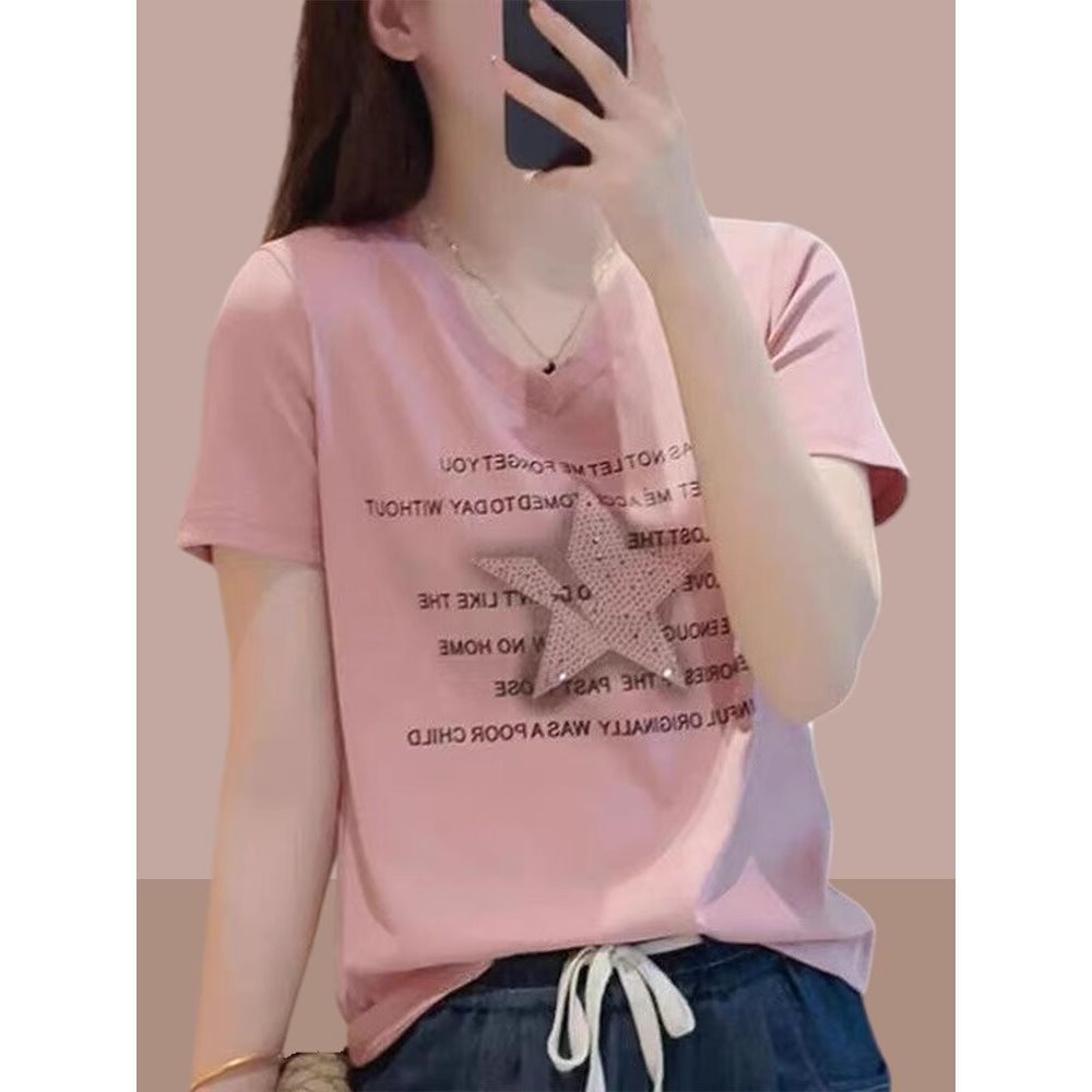 suseyiku 春夏韓国風スリムフィット V ネック無地ベーシック多用途コットン半袖 T シャツトップ女性用
