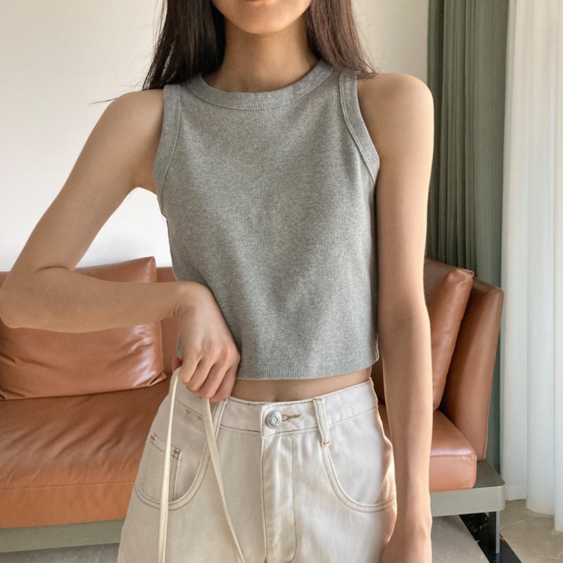 女性用グレーのキャミソール、女性用の白いタイトなボトムシャツ、女性用のショートスリムフィットノースリーブトップ、アウターウェアイン